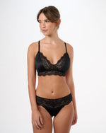 תחתון חוטיני תחרה ורשת - BLACK / XS
