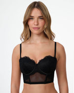 מחוך סטרפלס תחרה מרופד עם ברזלים - BLACK / XS