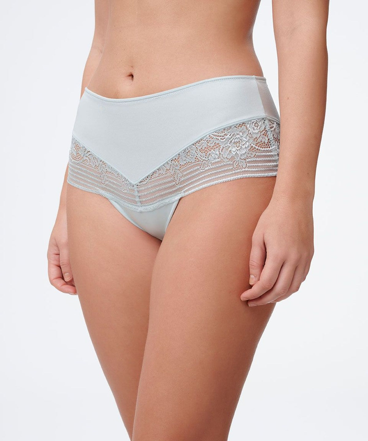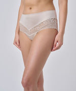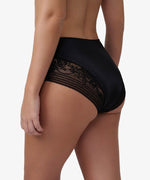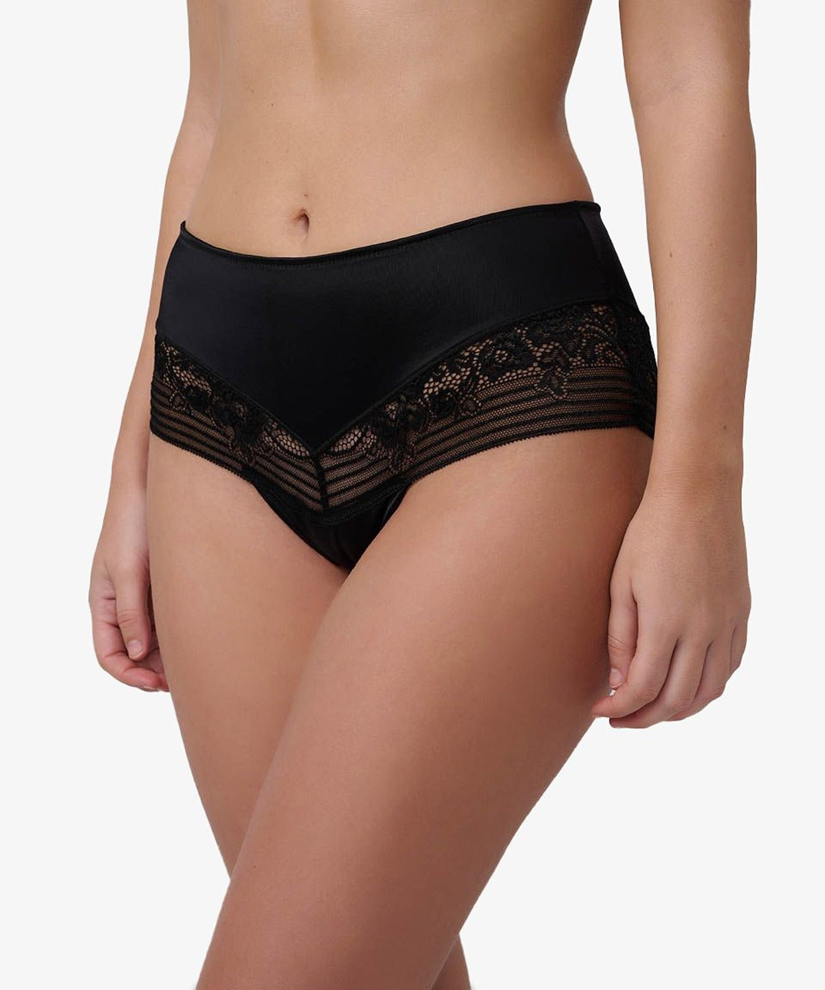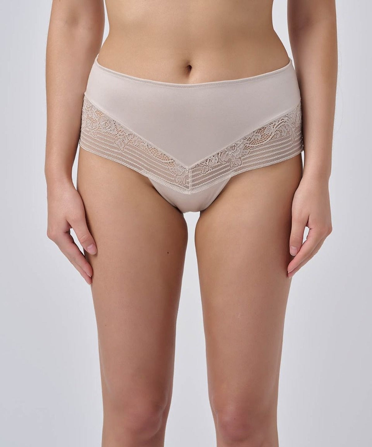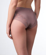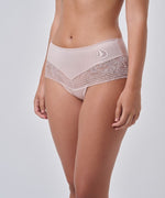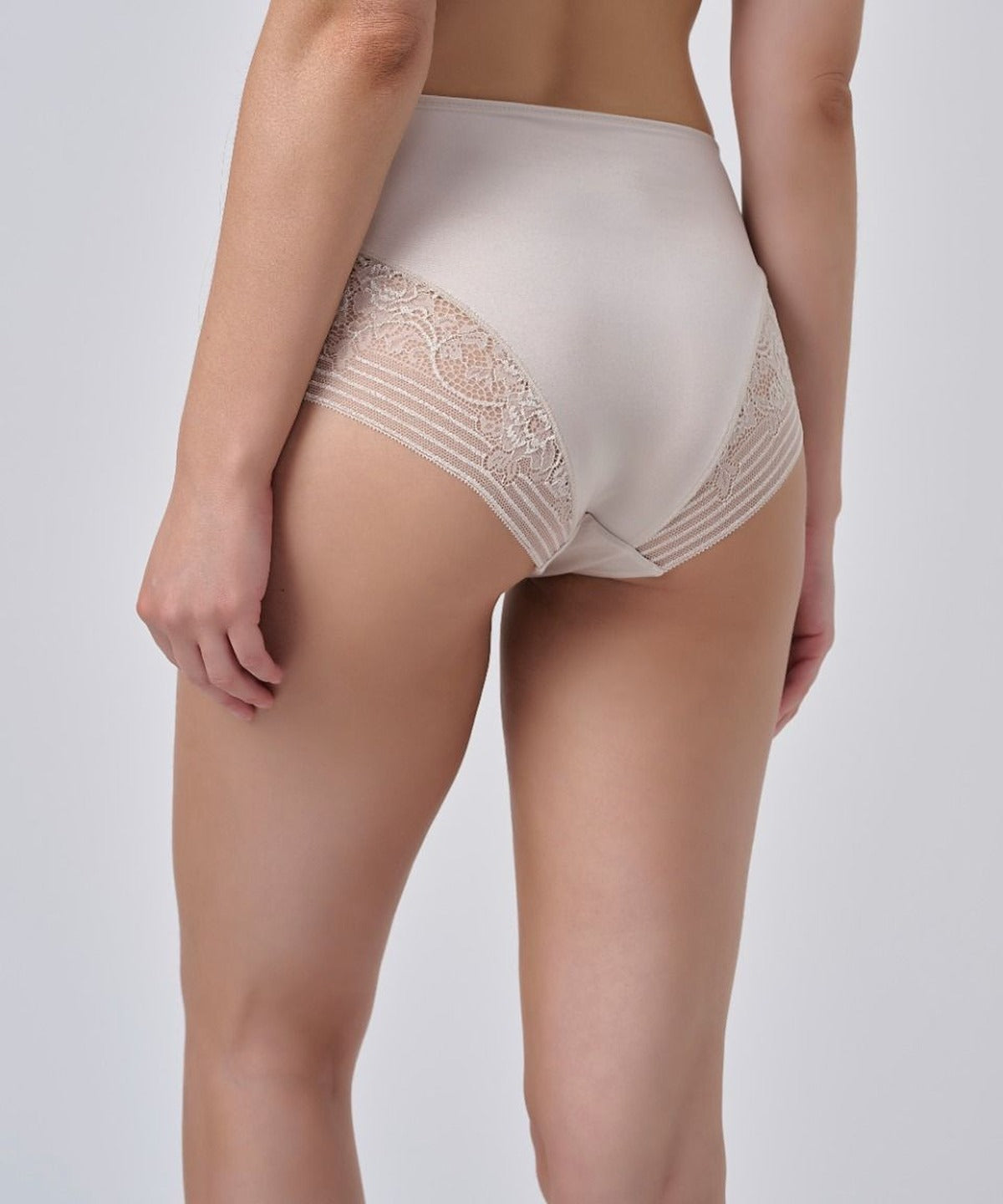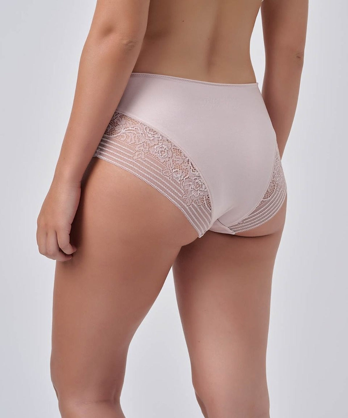 תחתון בגזרת מידי ,מלא ועוטף, מבד מיקרופייבר רך ואיכותי במראה מעט מבריק. שילוב של סרט תחרה ישר מאפשר משלקי אטום ושקוף. P-6304