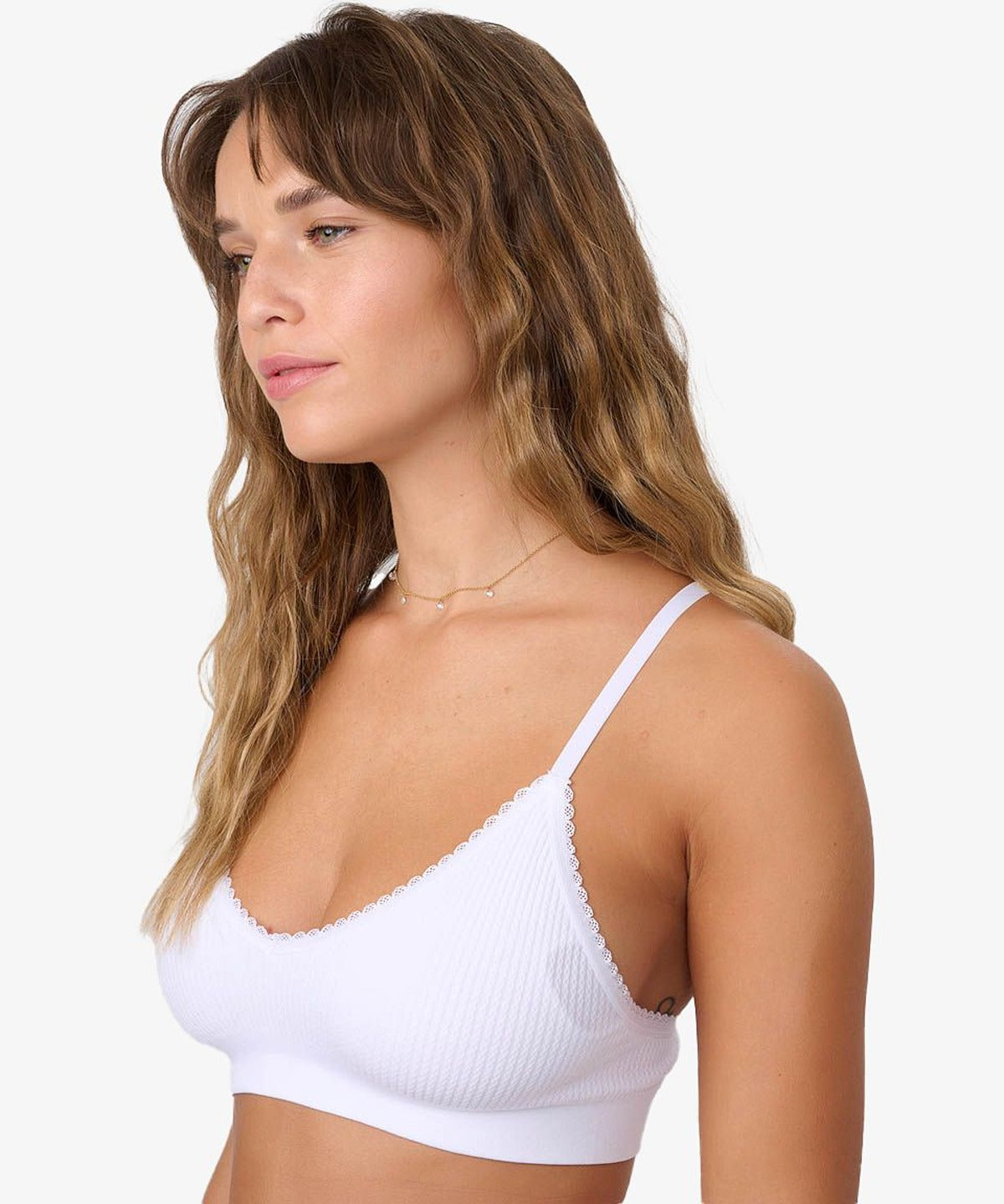 ברלט משולשים עם ריפוד נשלף. בד סימלס ללא תפרים בטקסטורת צמות עדינה וגימור גומי עדין בשוליים. גב עם כתפיות דקיקות במראה איקסים. BR-133S