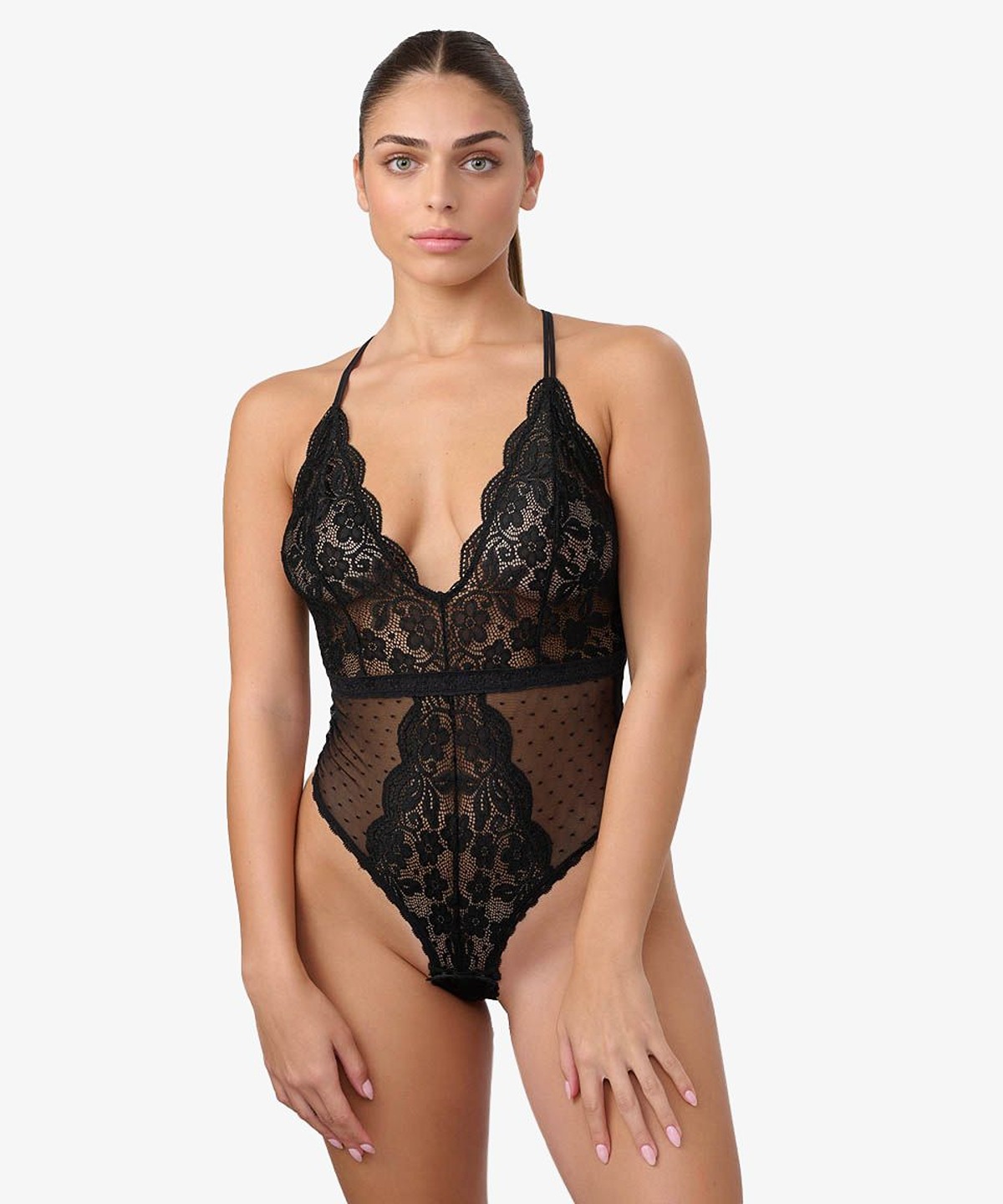• עשוי מבד תחרה אלסטי ורשת נקודות עדינה