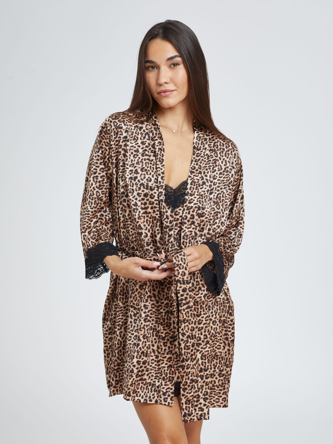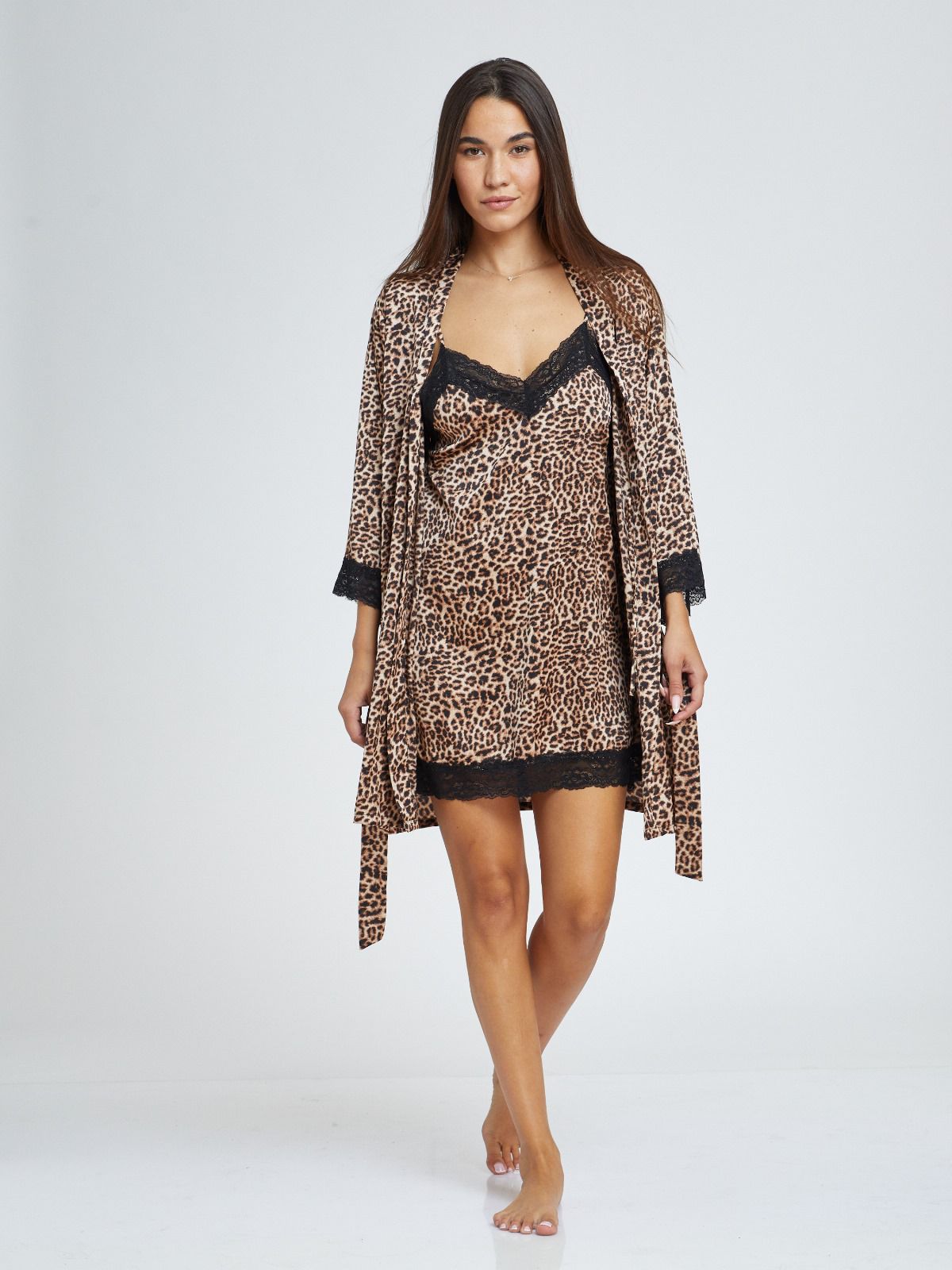 • עיטור תחרה עדין בשרוולים ובקצה החלוק
