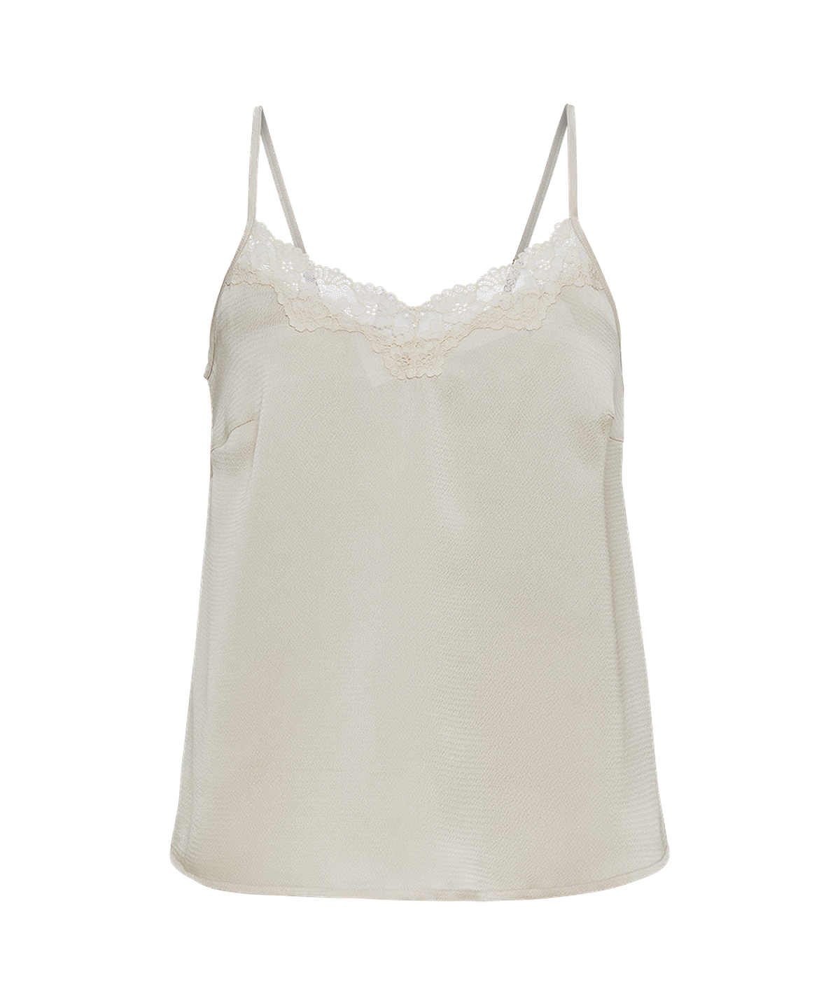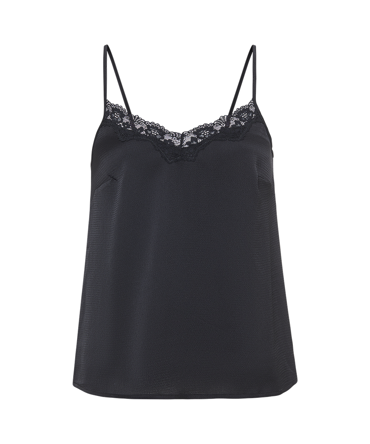 • גופייה בגזרת V עם עיטורי תחרה עשירים במפתח החזה