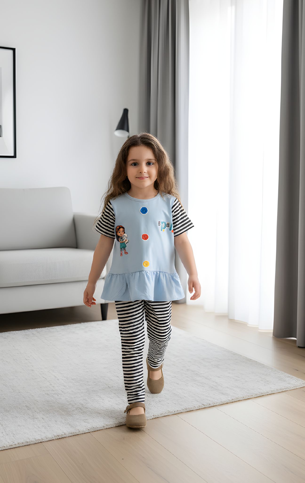 • סט פיג'מה הכולל חולצה עם שרוולים קצרים ועיטורי כפתורים צבעוניים