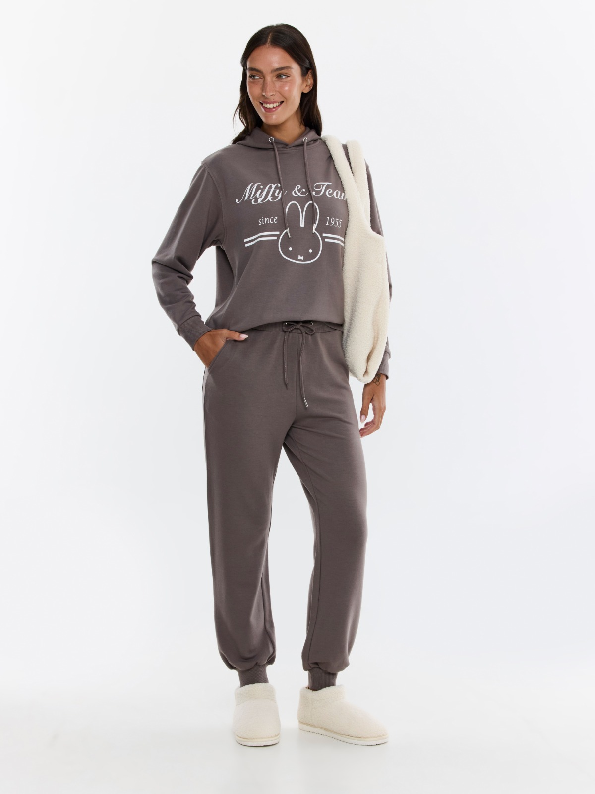 • כולל חולצת סווטשירט עם קפוצ'ון ומכנסי פיג'מה