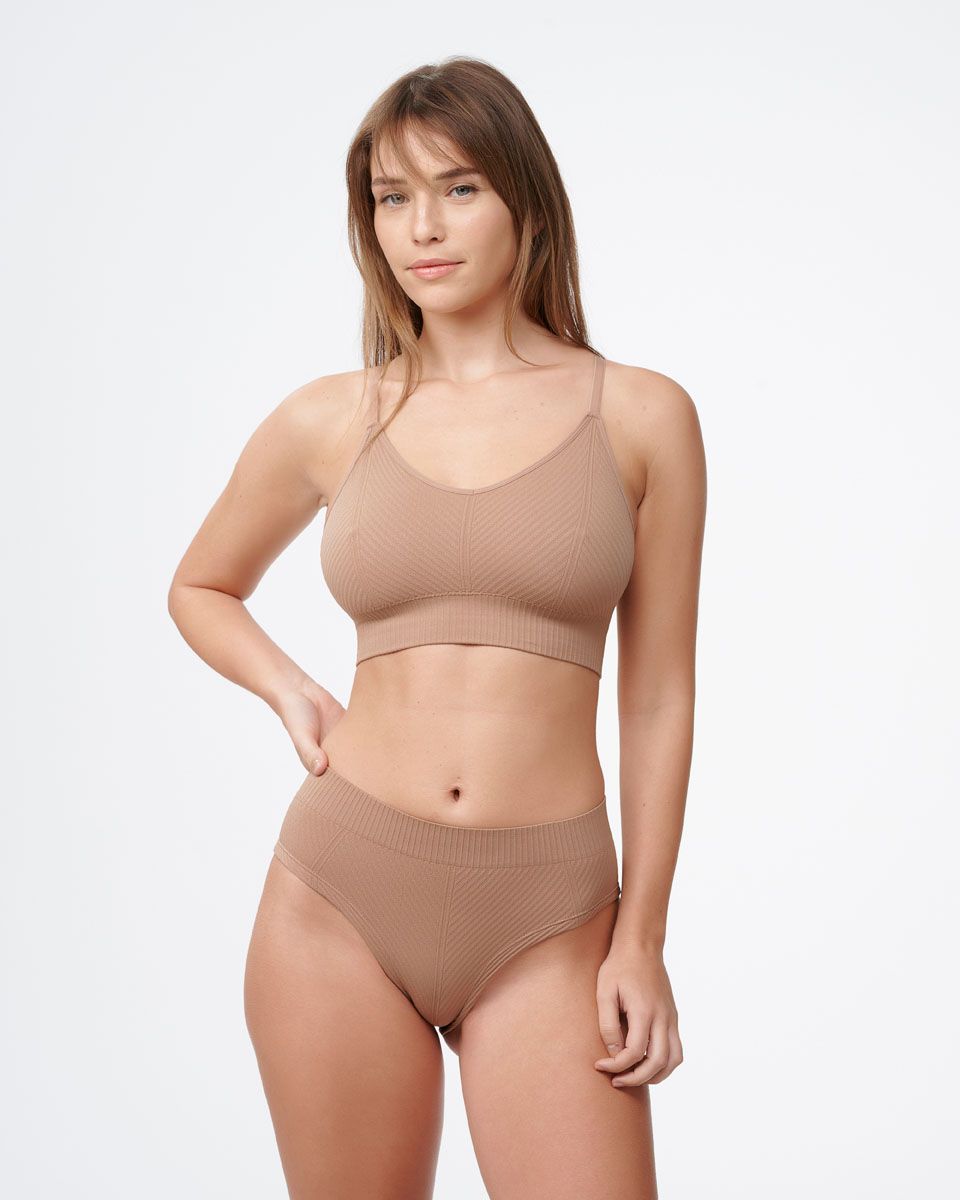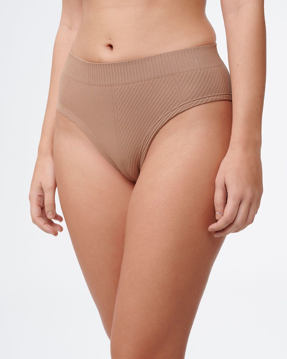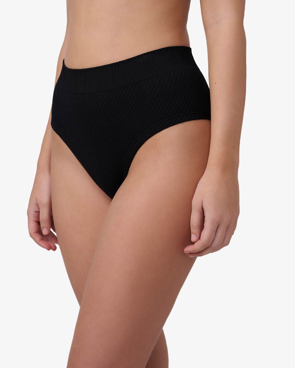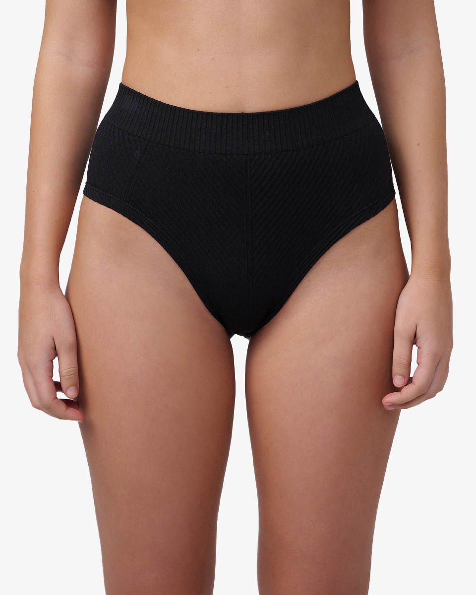 תחתון בגזרת מידי רחב וגבוה עם מפתח רגל היי לג, מבד ריב סימלס בסריגה אלכסונית.